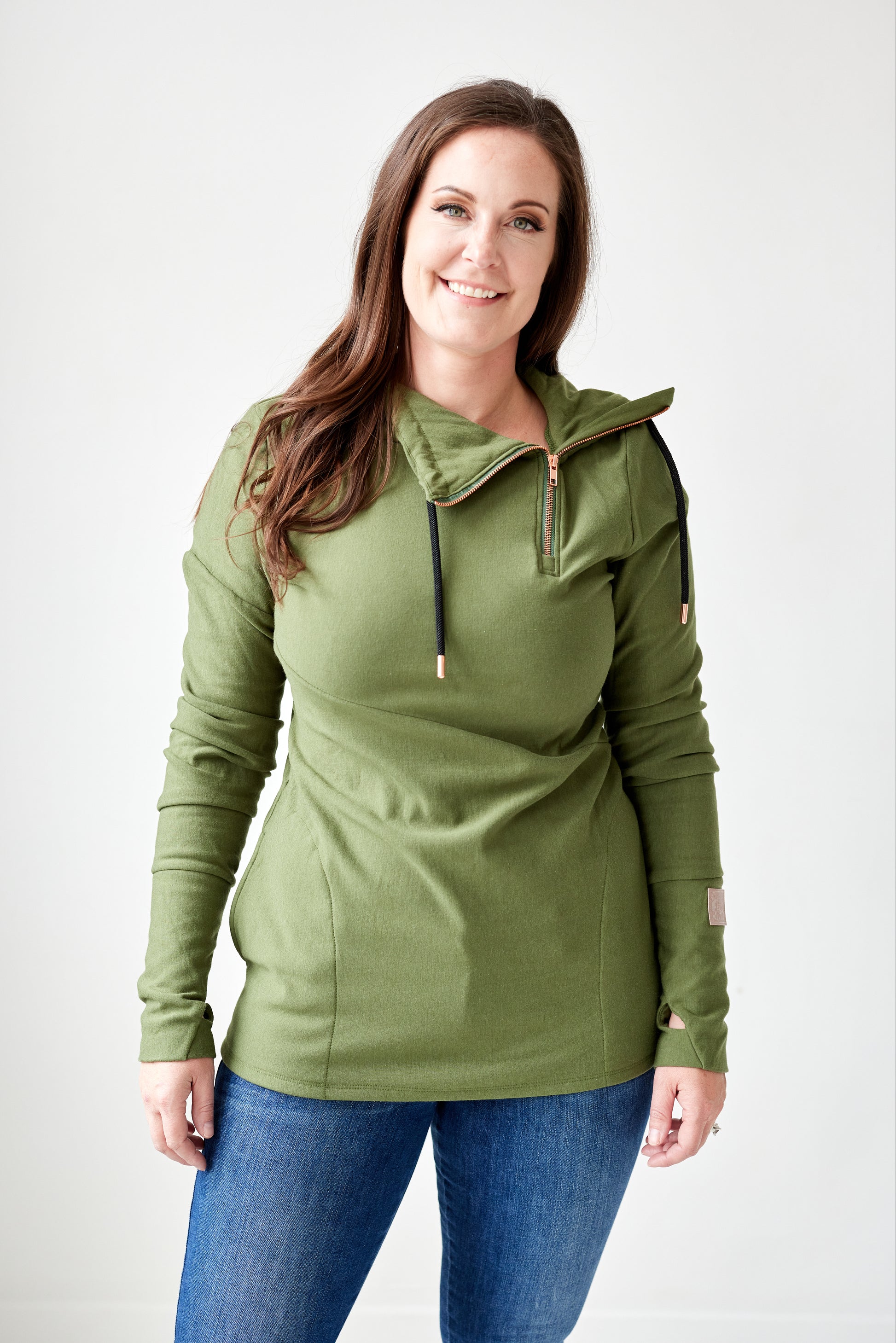 1/4 Zip- Moss with Black